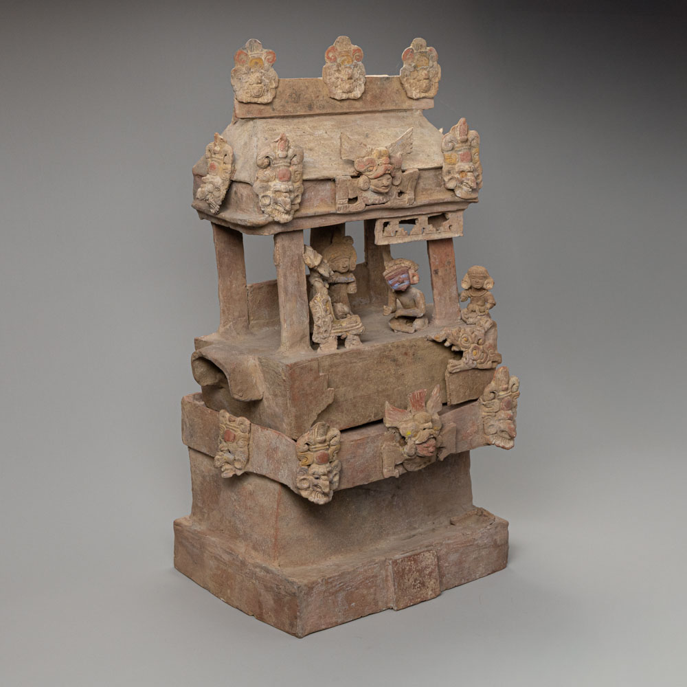 Description: Ceramic model of a two-story structure.