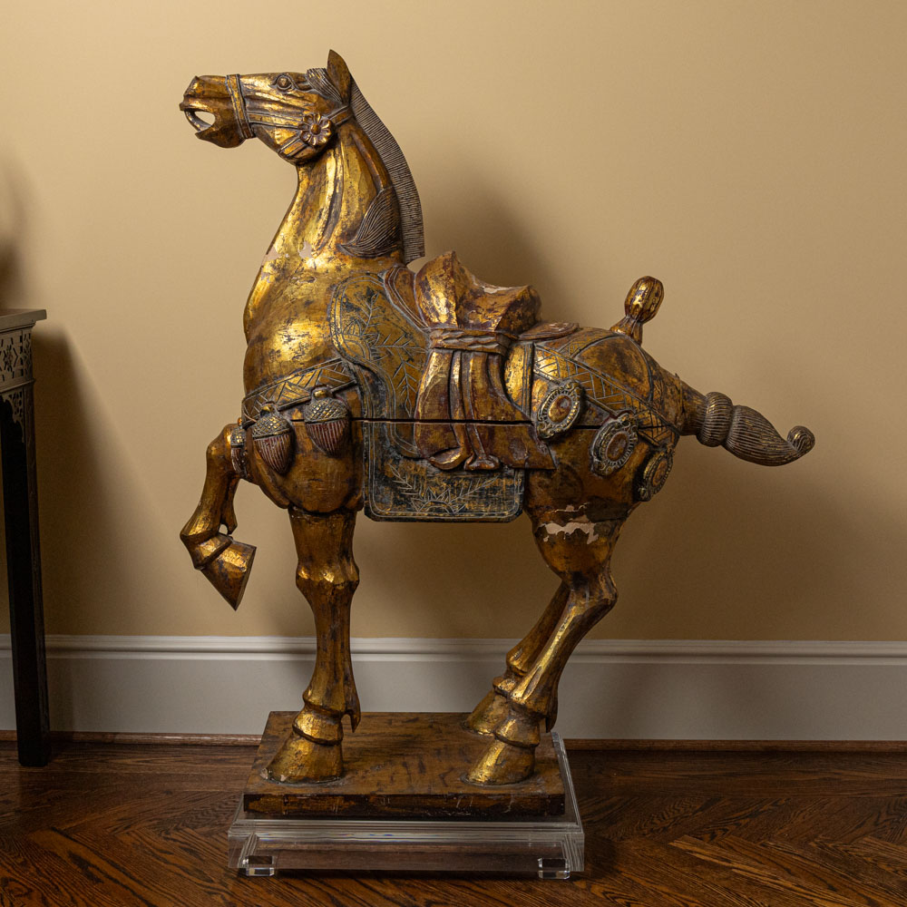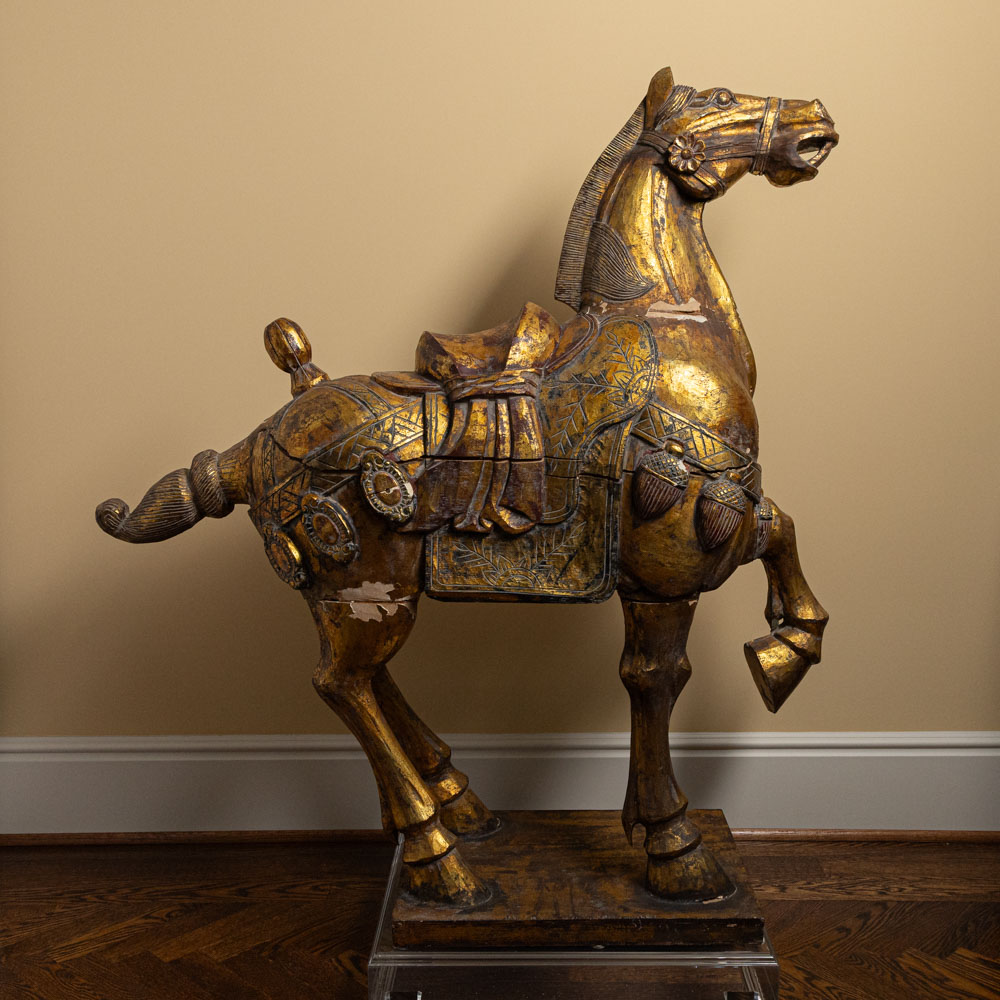 Description: Pair of Wooden Carved and Gilded Horse Sculptures