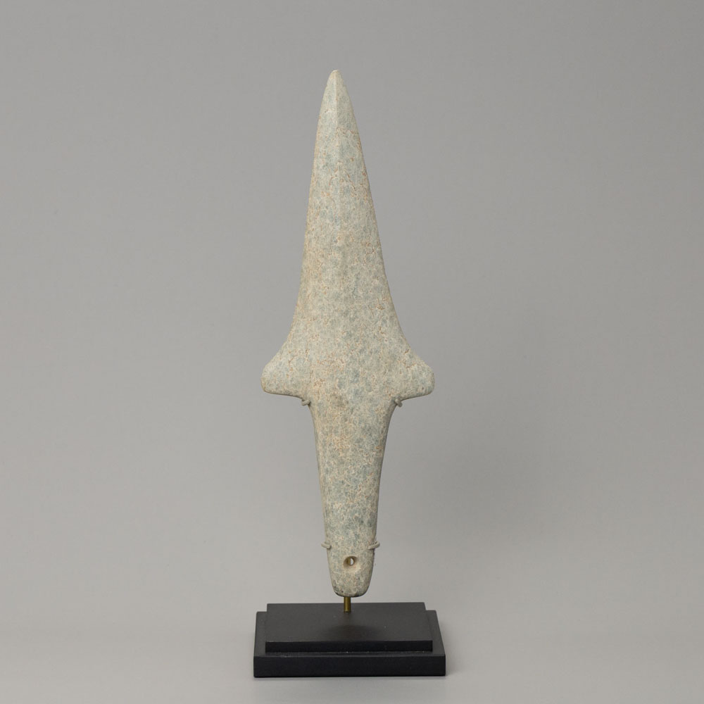 Description: Crafted from stone, this lance features a streamlined design with a pointed tip, showcasing the advanced stoneworking techniques of the Tairona people, and reflecting its significance in both warfare and ceremonial contexts.