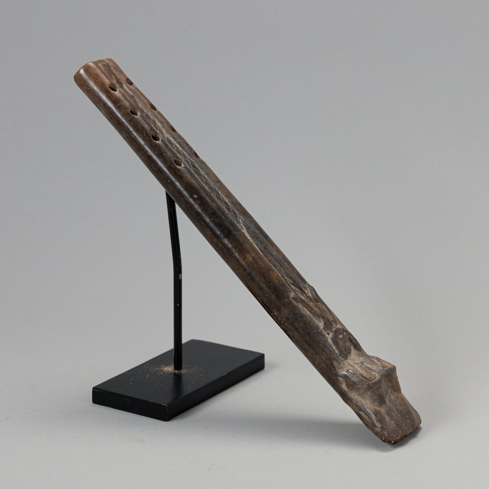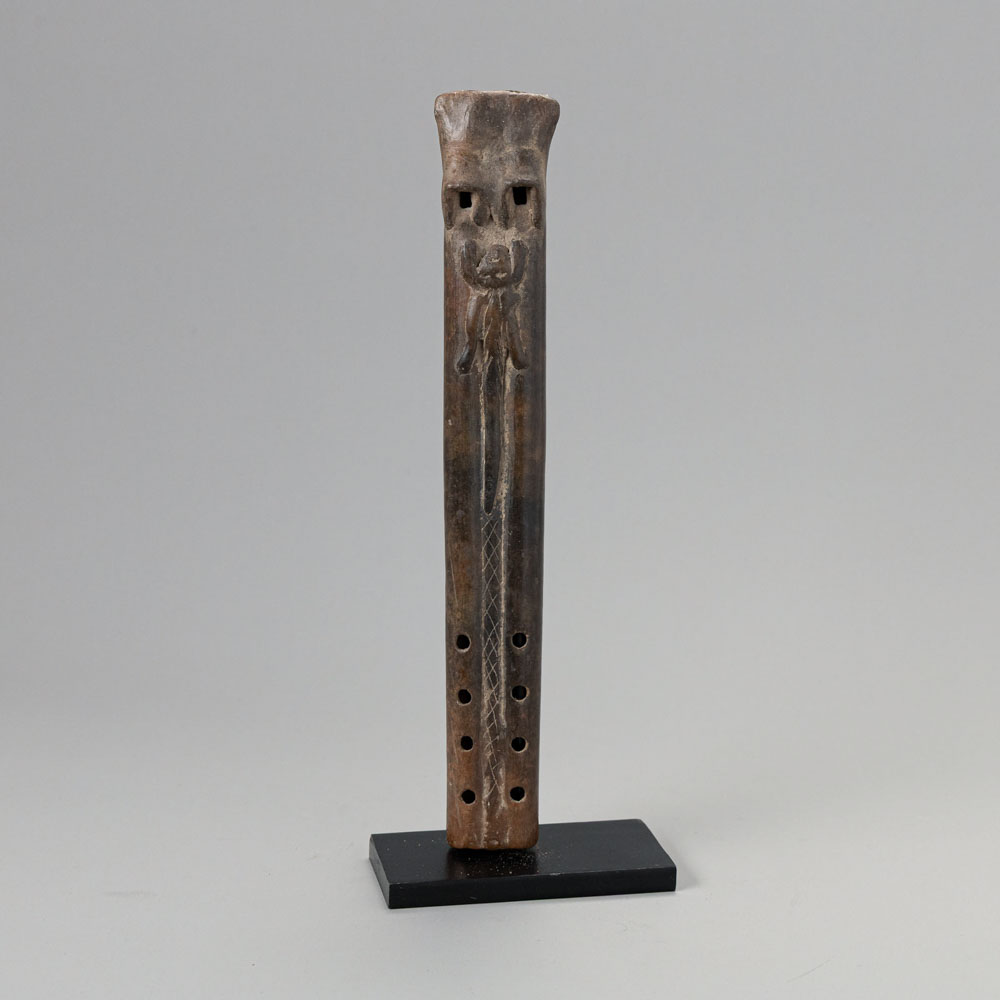 Dimensions: The Colima Ceramic Double Flute is an impressive artifact from the Colima culture of West Mexico. Made of ceramic, it features intricate designs and a dual-chamber construction that produces a rich sound, emphasizing the importance of music in ceremonial contexts.