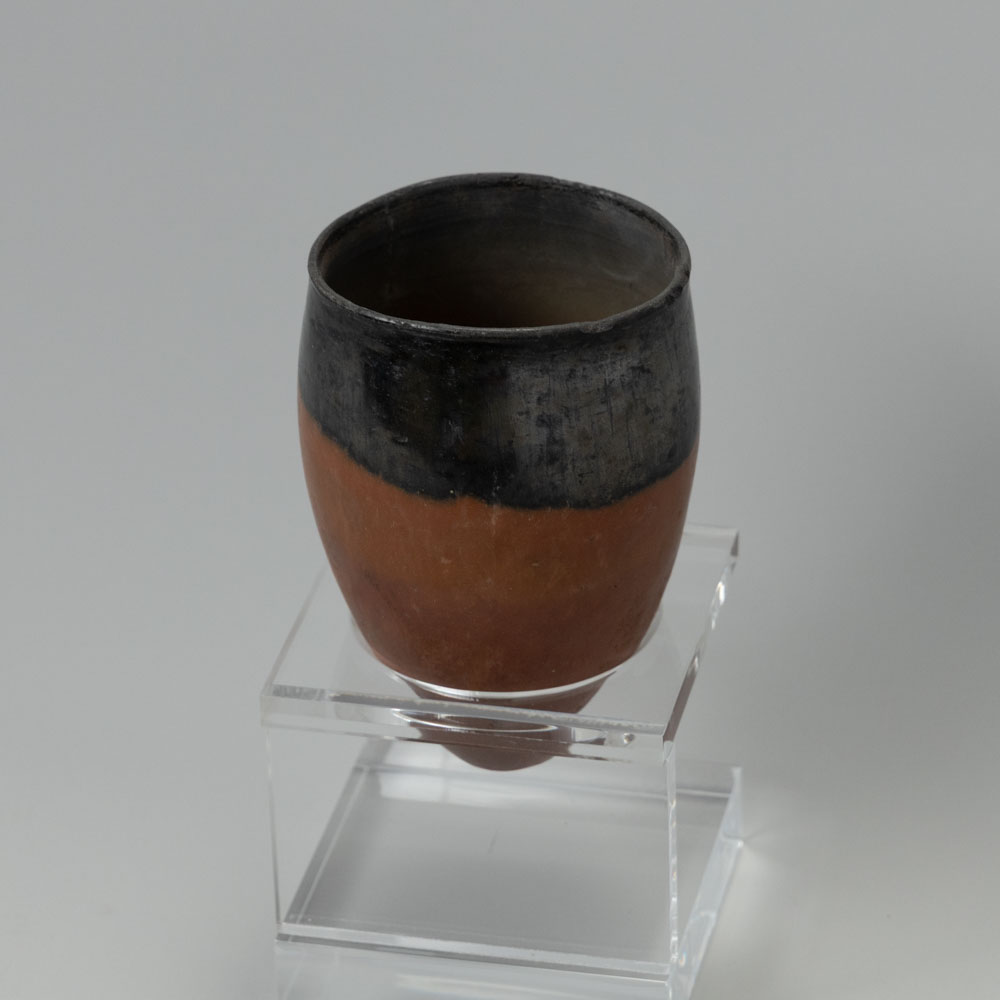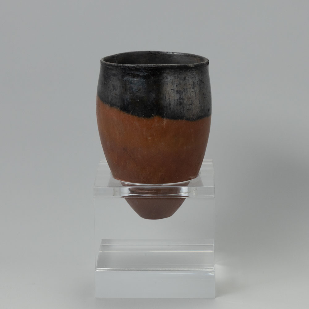 Description: An Egyptian Black-Topped Pottery Jar. Predynastic Period, Naqada II-III, Circa 3500-3000 B.C. Of Ovoid Form with Tapering Body and a Flat Base, with Thin Walls, the Black with a Metallic Sheen.
