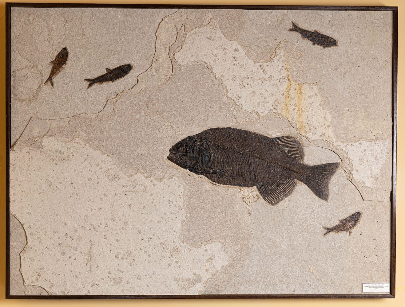 Description: Four Knightia Eocaena and One 22″ Phareodus Encaustus. From the “Fossil Lake Classic” Stone Layer. This Piece Was Pulled From The Green River Stone Quarry in Lincoln County, Wyoming.