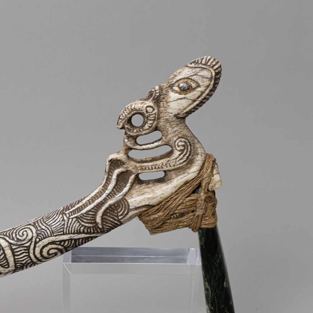 Description: Maori Ceremonial Axe made of Whalebone & Jade. The Maori are the Inddigenous Polynesian People of New Zealand.